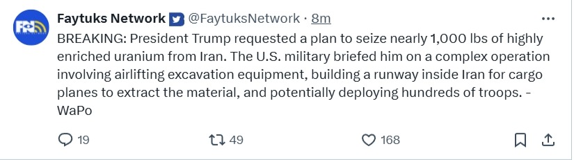 >>532152170>>532151398Also, Trump was letting Iran drag out negotiations with Witkoff (who is a pushover and shouldn't be in the job in the first place) for a long while. The actual best time to strike Iran was during all those protests, but Trump left it far too late, allowing that to be repressed by the regime because he was still trying to get some kind of deal with Iran during the long running negotiations (as per his own tweets and Witkoff at the time)