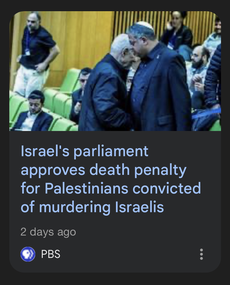 >mandatory execution for all criminals not jewish (who are released and never charged)holy fuck when does the rest of the world step in to put a stop to this insanitysatanyahu himself voted FOR this law btw