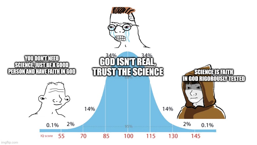 >>532143514Atheism only occupues the 100-120IQ gap.By the time you've hit 130 IQ evidence for God is everywhere and undeniable in its obviousness.