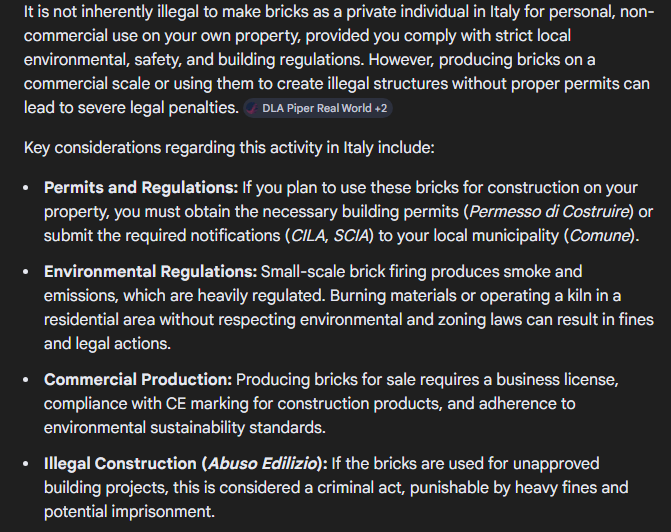 >>532143743>it's illegal to make bricks in ItalyWELLL what the fuck I'm supposed to use to make my house?