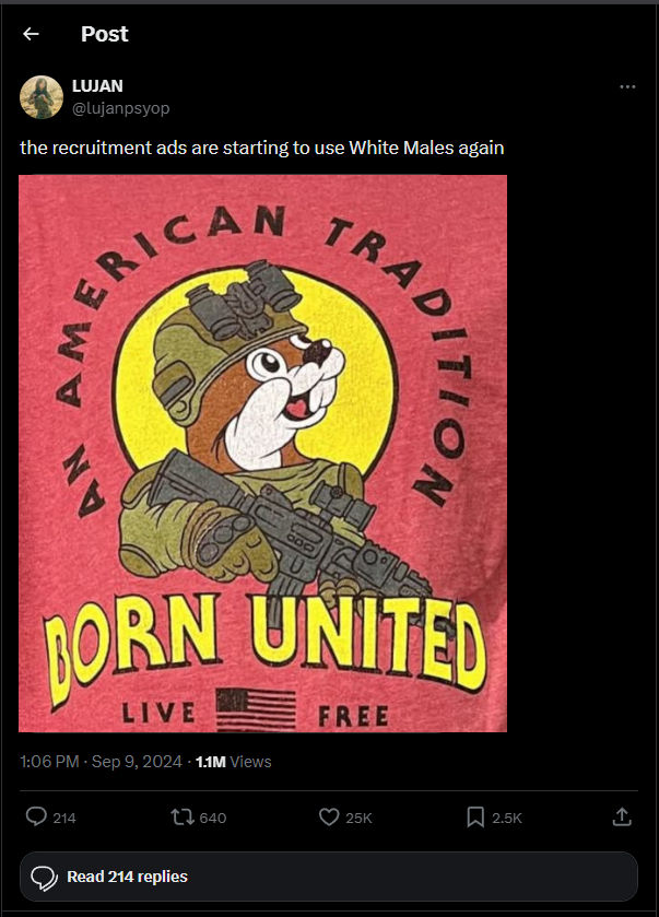 >>532149565>They're using the definition of mid to get men to enlistMan I remember when they used hot women for propaganda. What happened?