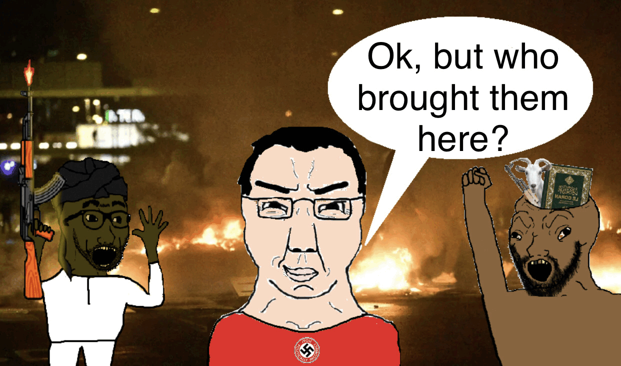 >>532167235muslims aren't in Europe because they're "fleeing" anything you fucking radish head, it's a deliberate invasion. it's telling of how little time you've been here.even fuckwits that arrived ten years ago knew what was going on