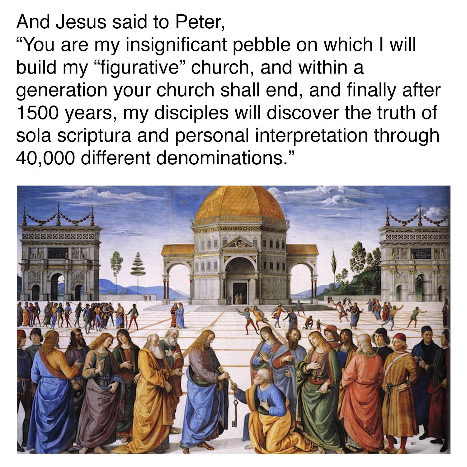 >>532174437Old Testament isn't canon, but protties insist that it is.So do evangelicals like that guy.Falsely claiming a redeemer is heretical and a sin btw. The redeemer shows himself, he's not declared. Revelation warms of this but protties don't read good prophecy, they read the Old Testament and completely fail to understand it.They won't even quote verses in context of the chapter they're in. These people twist the Word of the Lord for their own selfish gains and purposes, just to win arguments and avoid critical thinking.Ironically, critical thinking is what Jesus did and told people to do.