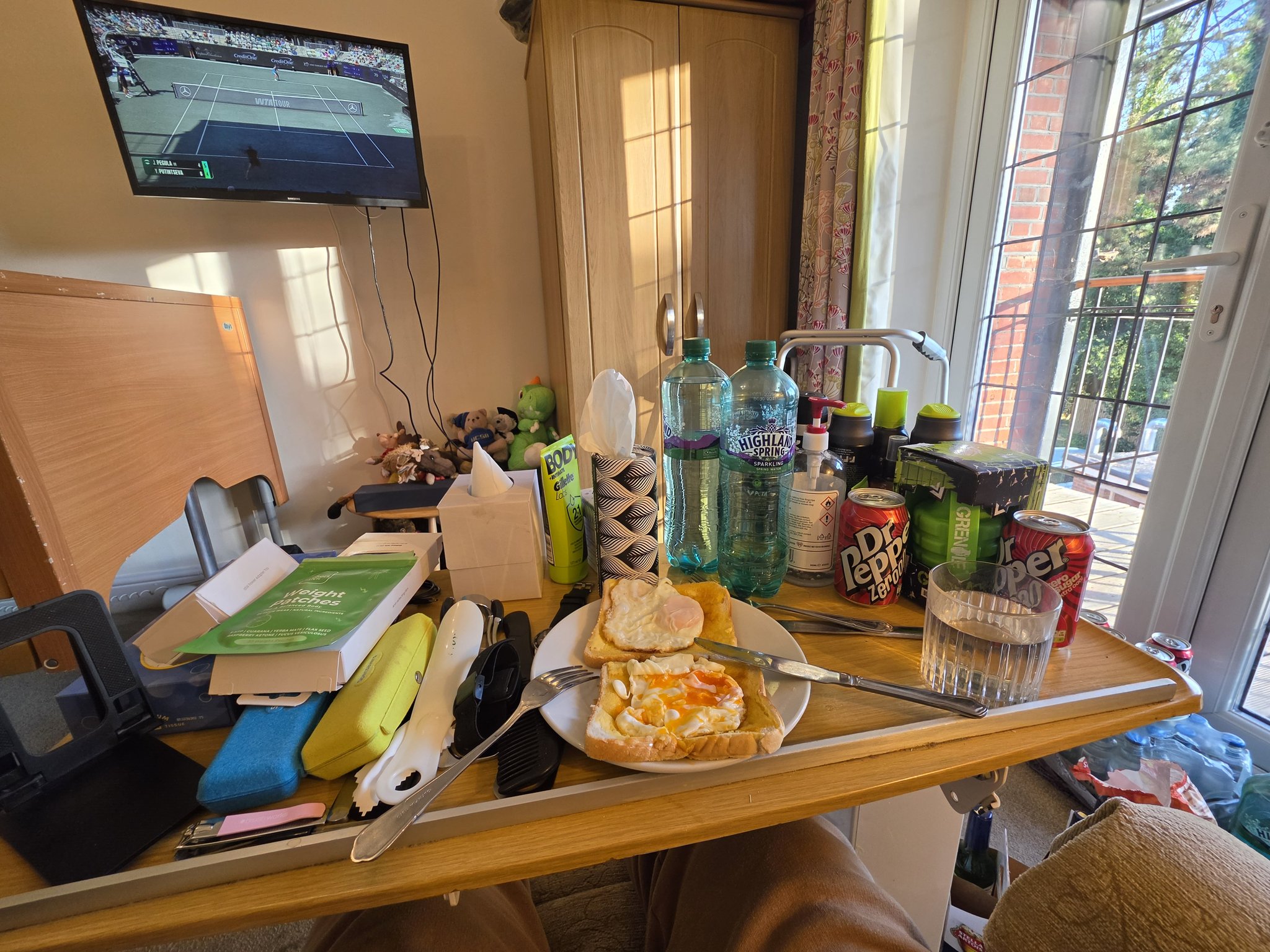 ... breakfast time wearing my excellent glasses watching Tennis highlights on sky sports Tennis on my TV via sky stream in home ...
