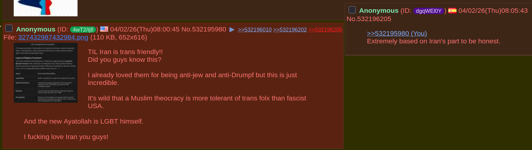 >>532198775>iran is pro-gay jewish valuesThey don't even try to not lie worse than kikes lmfao