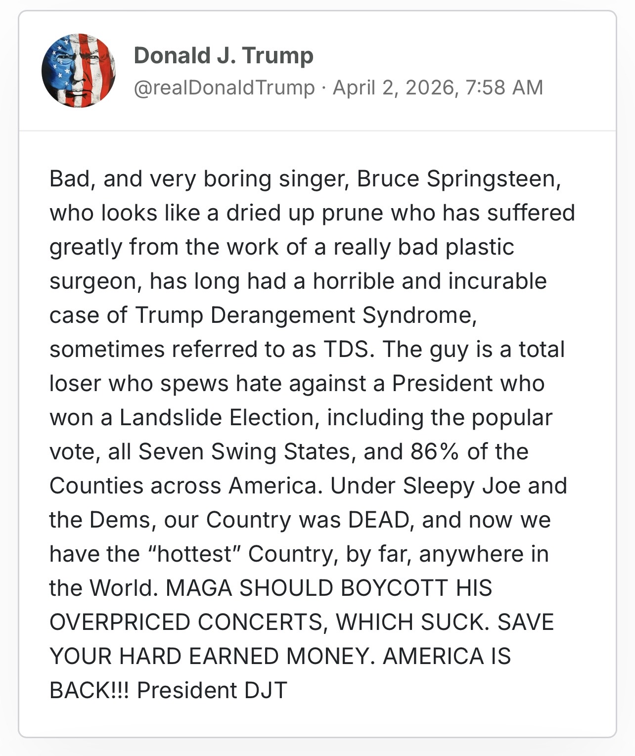 >>532195043As if his whining about Bruce Springsteen (lol, lmao) is much more coherent that this