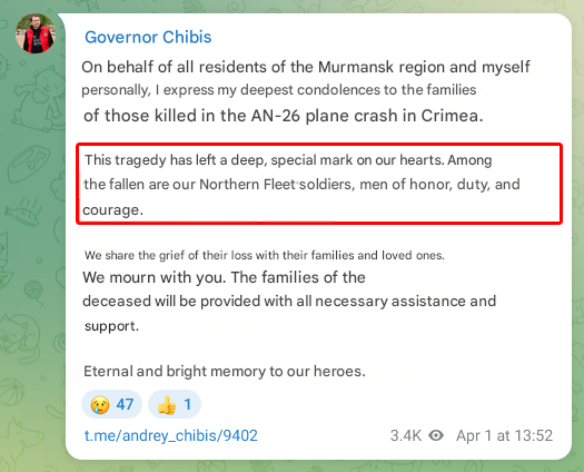 >In Crimea, Lieutenant General Oleksandr Ivanovych Otroshchenko was killed in an An-26 plane crash. It is also possible that six more officers from the Northern Fleet headquarters were killed, but this information still needs confirmation.oh no no no LMAO