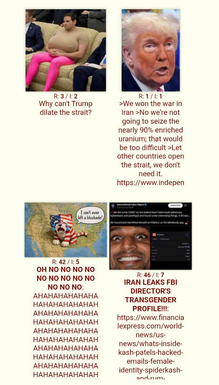 >>532201847I've only been posting in this general regularly since this Iran war kicked off because you faggots infested the rest of the board and I intend to make you as miserable as possible for that.You lost tranny. Your shilling is meaningless. You're not changing anyone's mind or demoralizing anyone. Every real anon is just going to keep mocking you.
