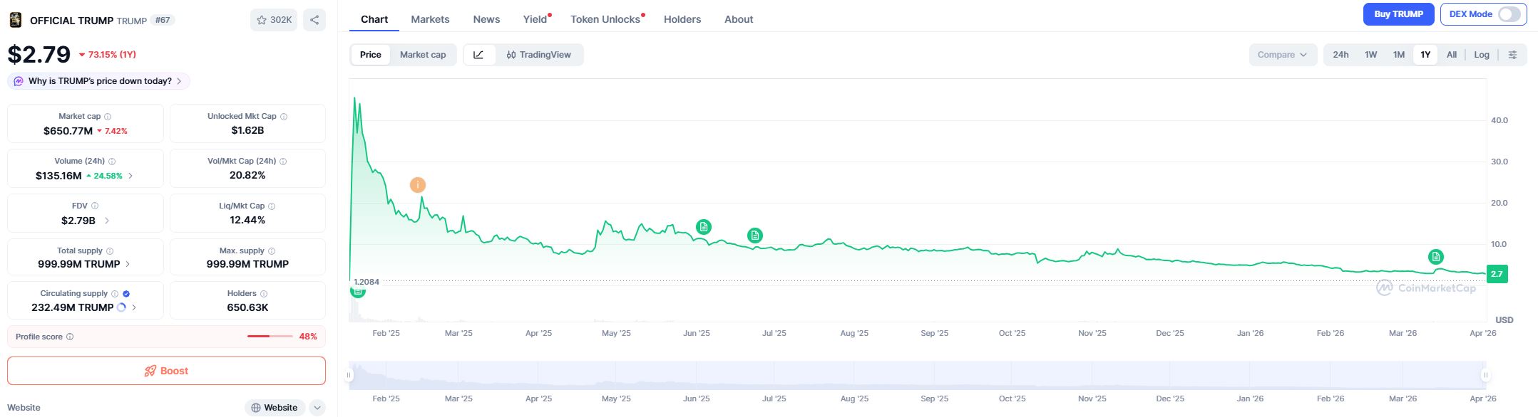>>532201413>from your lotchange your flag bongistani>>532201540If you want evidence of Trump doing rugpull crypto scams all you have to do is look at a $TRUMP coin chartI bet you bought his $400 nigger shoes too