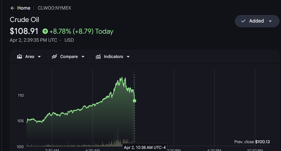 >Brent Crude $108