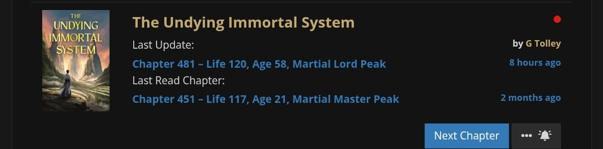 >>532217813I've stopped reading this for a while to get a nice backlog of chapters. About to catch up. https://www.royalroad.com/fiction/81572/the-undying-immortal-systemAlso With This Ring Young Justice fanfichttps://forum.questionablequesting.com/threads/with-this-ring-young-justice-si-story-only.8961/