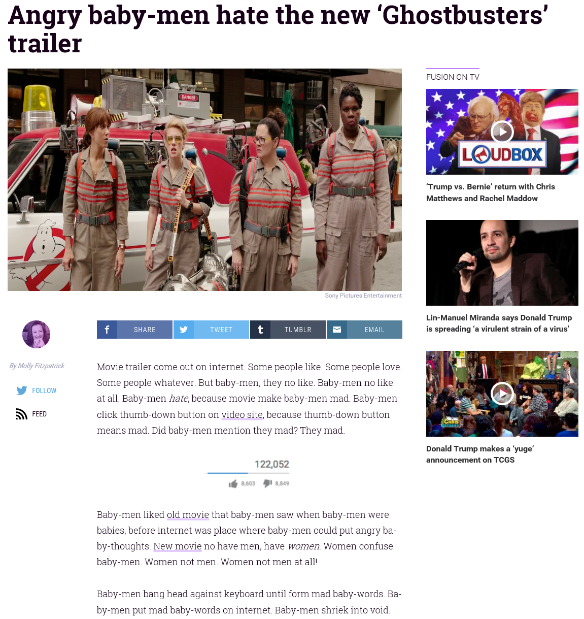 >>532234608>Again, one article saying something you don't like in review of a movie does not actually indicate that all those things you claimed are being removed.the fact they're all being removed indicates they're all being removed, the articles only prove it's not an accidentonce you can actually process that thought come back and try again