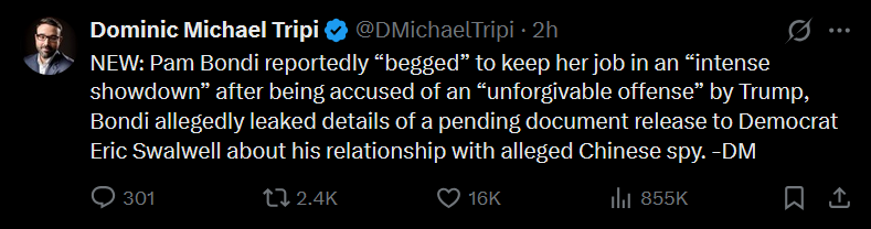 So first Noem, now Bondi. Trump's doing a foidicide.