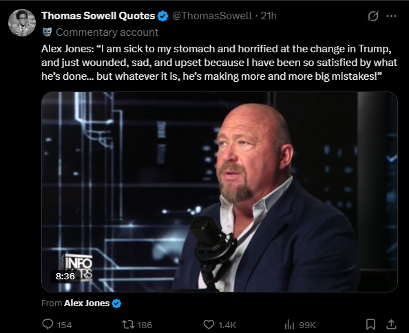 >>532225338I remember in Trump term 1 Alex went into a histrionic rant about how Trump betrayed us over syrian airfields. Literally screaming and crying while Owen Schroyer gazed on stupefied. Point being Alex is emotional and easily influenced like a woman and should not be seen as anything but entertainment.
