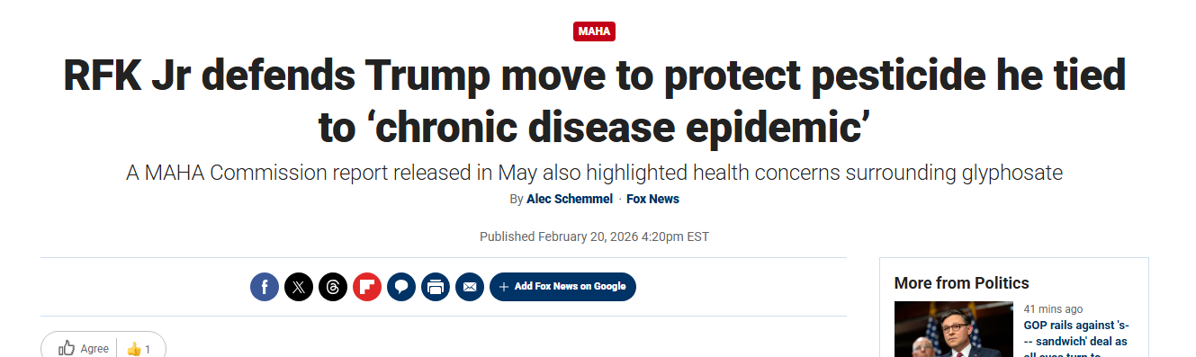 >>532228581He's done the bare minimum of taking the junk out of the food supply if anything at all. He even went back on his statements about deadly pesticides and herbicides and now thinks they are okay to spray food down with. What exactly makes him based? He is one of those people who looks like they are doing something but really isn't doing anything at all to change things for the better.>Health and Human Services (HHS) Secretary Robert F. Kennedy Jr. recently defended a move by President Donald Trump to protect and boost the production of a precursor chemical for pesticides, which just two years ago RFK Jr. said was a major contributor to "America's chronic disease epidemic," and if elected he would "ban" it. >Citing national defense imperatives, Trump passed an executive order earlier this week to protect a precursor element used in the production of an herbicide known as glyphosate. Trump's executive order described glyphosate-based herbicides as "a cornerstone" of the United States' agricultural productivity. https://www.foxnews.com/politics/rfk-jr-defends-trump-move-protect-pesticide-he-tied-chronic-disease-epidemic