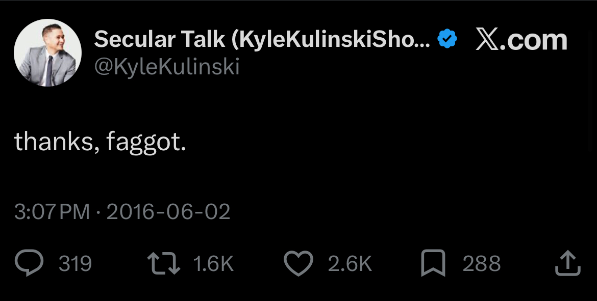 >>532230803Kyle is legit based. He is authentic and is not a shill but he gets a lot of things wrong. He banned prophet jiang after interviewing him on his show because he discovered that he denies the holohoax, and that was pretty bluepilled triggered move.My main issue with him is that he married a single mom and is raising her kids and that's literal cuckoldry