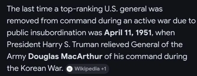 The head of the Joint Chiefs of Staff was smart enough to retire before all this shit went down. I think they wanted Bondi to quit voluntarily before she could be impeached for her testimony about the Epstein files, and before further evidence would be brought to light. Now the new guy can say he needs to get up to speed first and to "settle in" before making any changes