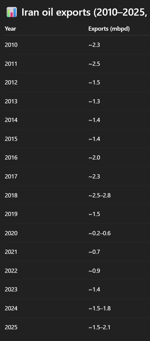 >often only around 50,000–80,000 bpd recently, less than 5% of Iran’s exports