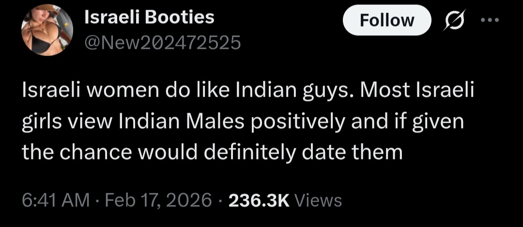 >>532235748Its true, Israeli men are just jealous of the BIC, we need to send 10 million Indian men into Israel ASAP.Extra protection, check.Extra bollywood, check.Extra Jewish pussies getting bread by Indian bulls, check.Chaim and Shlomo can even watch too, imagine how multicultural and tolerant Jewish society could become if we bypass racist Israeli men.