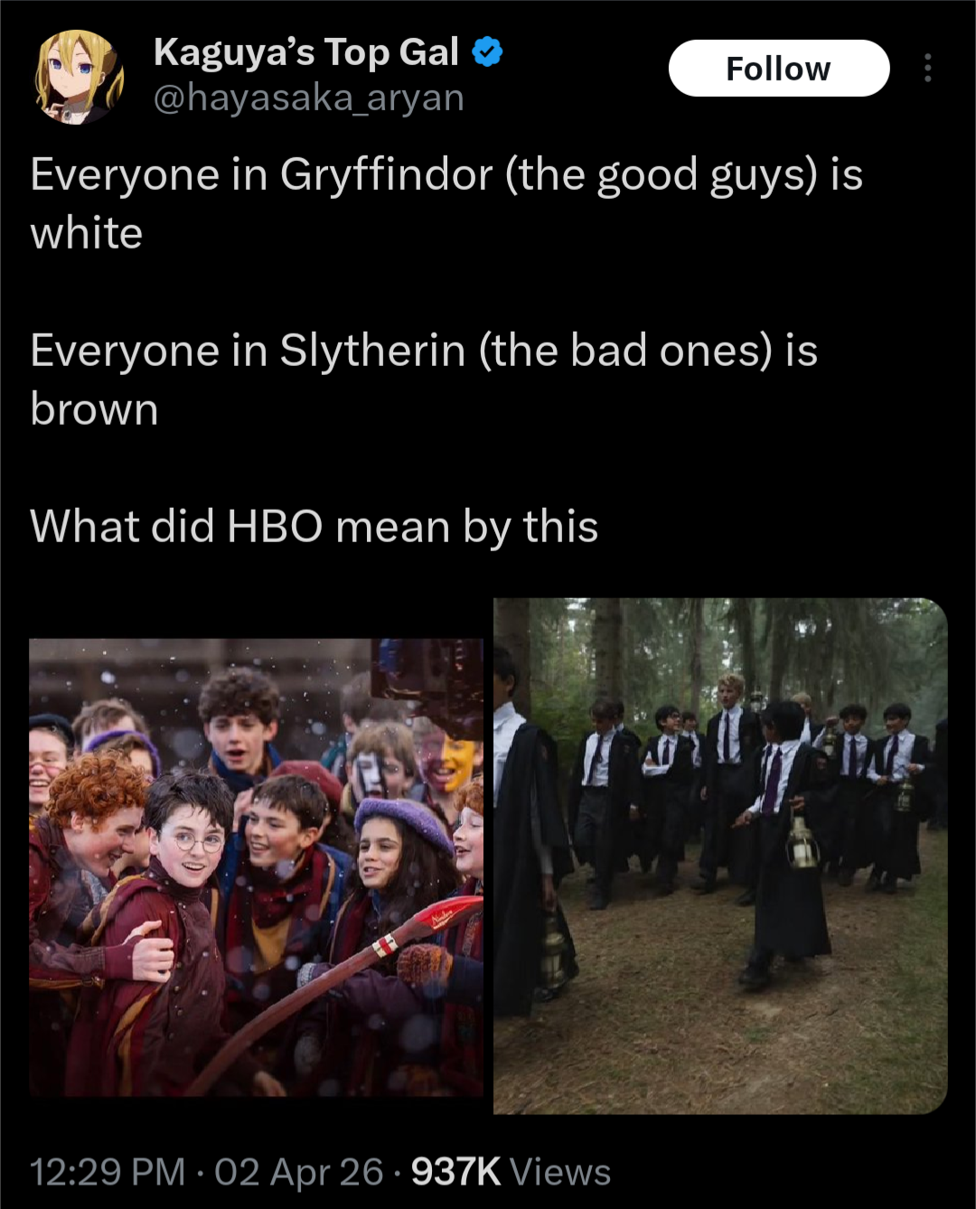 >>532242134Slytherin are unironically the good guys though. Gryffindor is a zog dog house. Slytherin are the only ones who are opposing the continued muttification and degeneration of the wizard race.