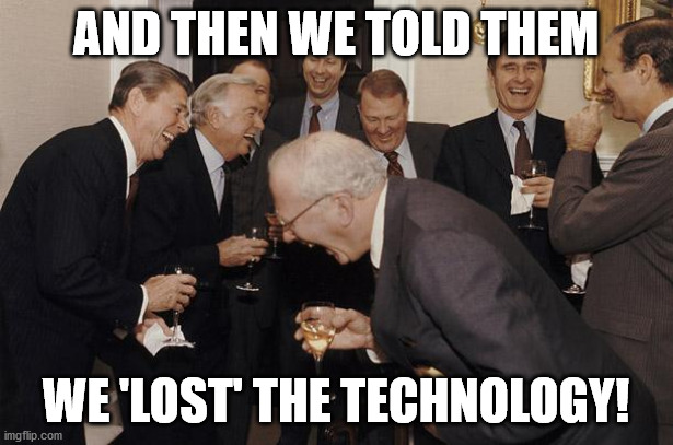 >>532245360This. Morons think technology is video game shit that you unlock once and you have the capability forever.