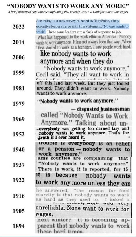 >le nobody wants to work anymoreWhenever someone breaks out this canard, it is 0% about noticing an actual, addressable problem in their workplace and 100% about signaling that they "get" the managerial culture and mindset.Like, there really is this specific mindset and culture that managerial circles have. You kind of have to believe that you are the last member of a dying race of hard workers and everyone you work with is an idiot and you are the only sane man that deserves a nice fat raise.And its entirely subconcious as well. I don't doubt OOP genuinely believes the screed he just recited. Maybe there is a weak little voice in the back of his mind telling him that its all bullshit, its all calculated, and that nothing he said was an original thought.He knows the score. He is playing the game. The idea that someone in their 20's is talking about "kids these days" is a bit silly, but he is getting in to that manager mindset early.But yeah, every time you see that "kids these days" diatribe with the same phrasing and complaining about the same vague, general problems, it's always about>look at me, I "get" it. give me a promotion