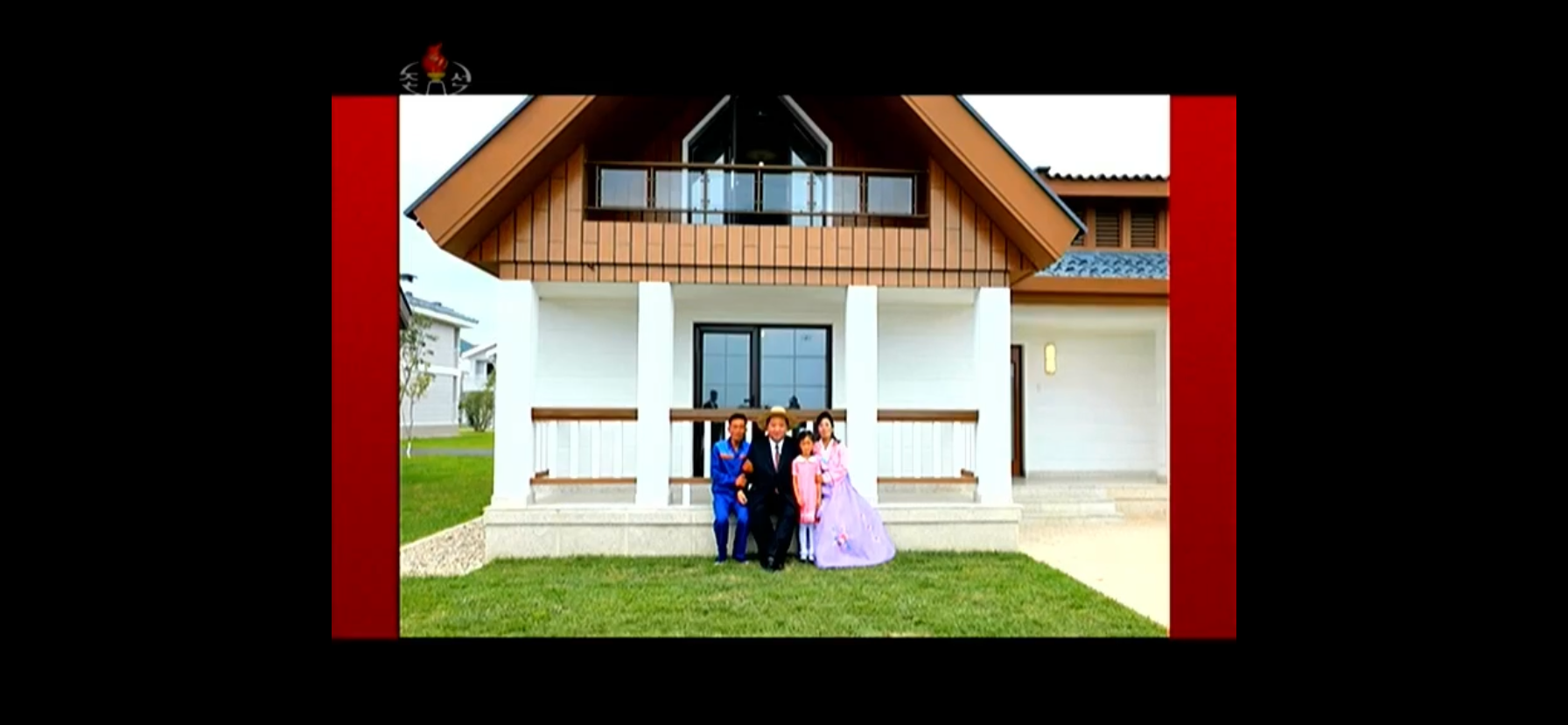 Kim Jong Un provided this family with a house and took his photo with them as memory of the time he built them a house.
