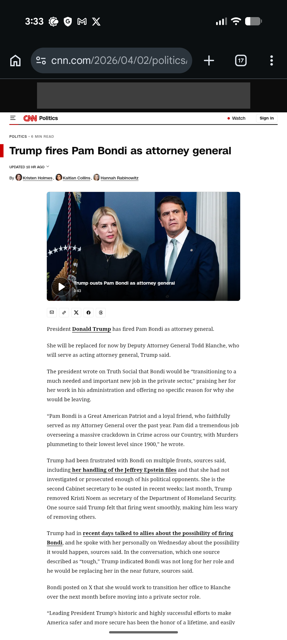 >>532250915Oh I forgot to mention Pam Bondi got firedI wonder what things are like over at the white house rn