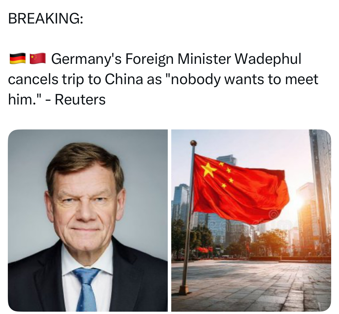 >>532251448Germany urging China... why dont they urge Israel who started this war wtf?