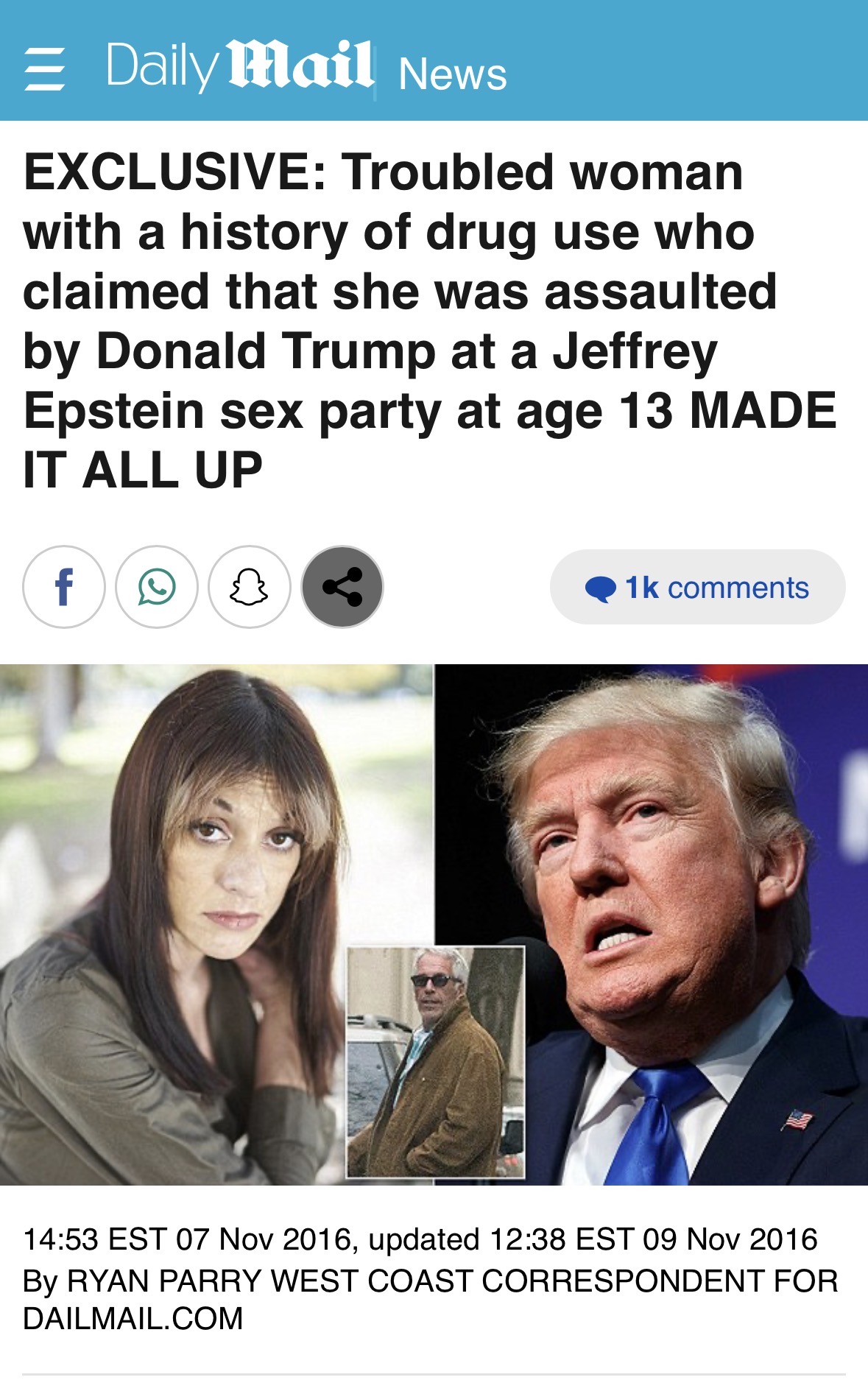 >>532255456>The woman first sued Trump and Jeffrey Epstein under the name Katie Johnson - a name we know not to be her real identity - on April 26 in Californiafederal court and filed an amended complaint in New York federal court in October, claiming she was subject to rape, criminal sexual acts, assault, battery and false imprisonment>The court papers offered no corroborative evidence that her claims were true>News that the allegations were dropped dismayed Hillary supporters who had hoped the claims would be the knock out blow for Trump's election campaign>Thousands of loyal Hillary followers had opened a discussion about the rape claims on Twitter and other social media networks hoping to damage Trump's push for the White House