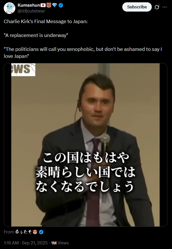 >>532258227I think it was his last speech to Japan.https://x.com/isfjcutebear/status/1969677219820945796