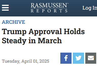 Trannies BTFOhttps://www.rasmussenreports.com/public_content/archive/trump_approval_index_second_term_month_by_month_archive/trump_approval_holds_steady_in_march