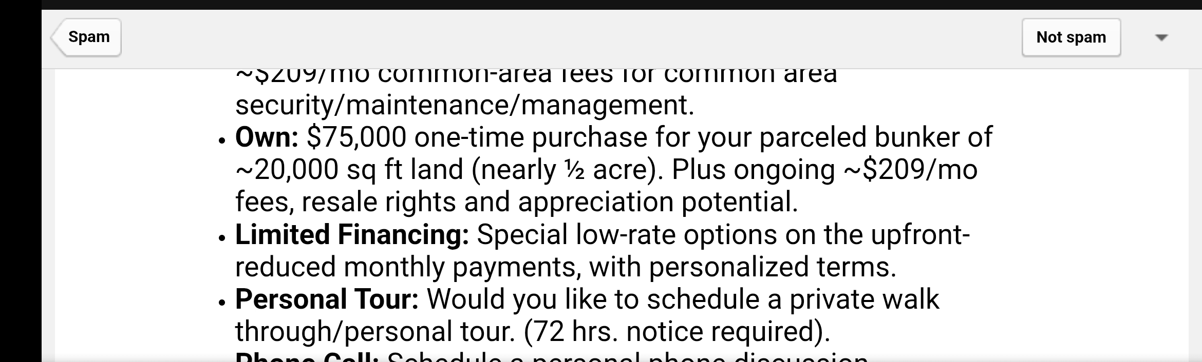 >>532257414>any other nsYea, i saw this in my email. Apparently if you buy a bunker you have to pay $209a month for life otherwise you're not allowed to sell it.