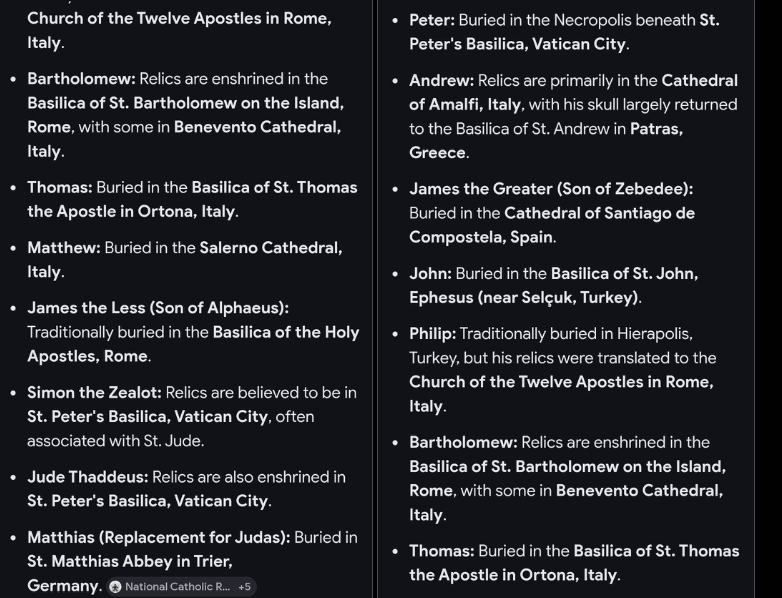 >>532277307ita a bunch of random people they buried, probably not even jewish, as i doubt they would have wasted a jew on such a trickprobably people from all over the world12 apostles werent even realshimon peter and shimon magus were the same character, having a jewish schizophrenic episode. guy was the first bishop of rome? he never even stepped foot in rome.