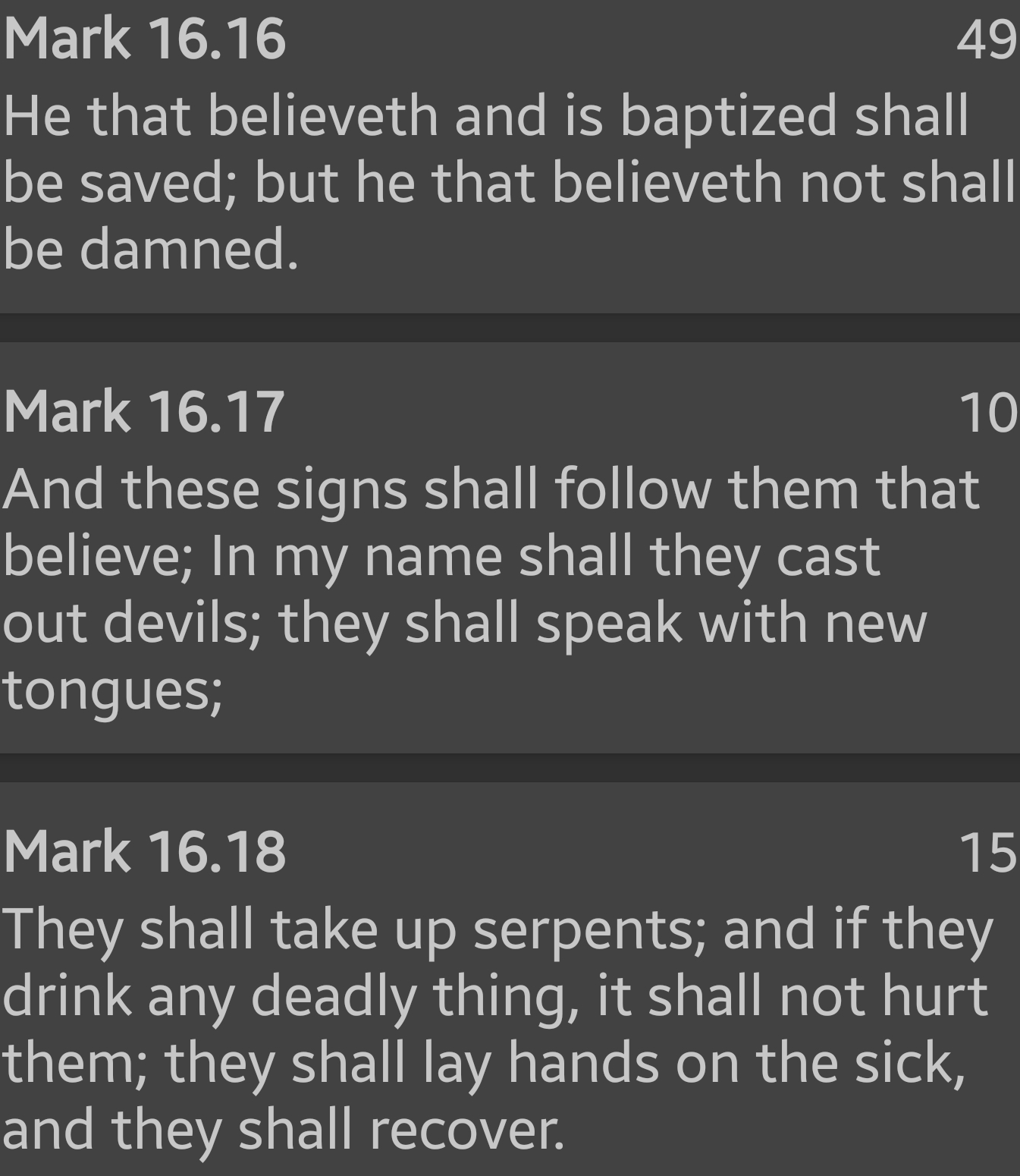 >>532279603By the same token, have you read John 3:16, Romans 3:21-30, Romans 4:1-8, Galatians 2:16, Ephesians 2:1-9, Titus 3: -7, Philipians 3:1-11, 1 Peter 2:24, etc, etc.The bread being an analogy of the passover meal referencing faith is an obvious potential interpretation for John 6. Meanwhile the myriad other verses mentioning being saved by Christ's offering on the cross received through faith and given by grace are impossible to link to bread unless it is a metaphor for faith.If the rite of communion was so important; why did John not mention it in his Gospel? Why does it not accompany any of the other writings on how we are saved?