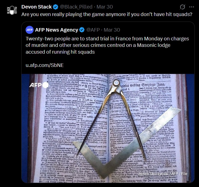 >>532267826>>532267864There is a reason why Devon never talks about the Freemans and hates Christianity with the passion of a guy who was forced to take it up the back door a lot. If you want to rise in the ranks of the Freemasons, that's what you have to do and that's also why we are getting flooded with LGBT+ propaganda from our political leaders.