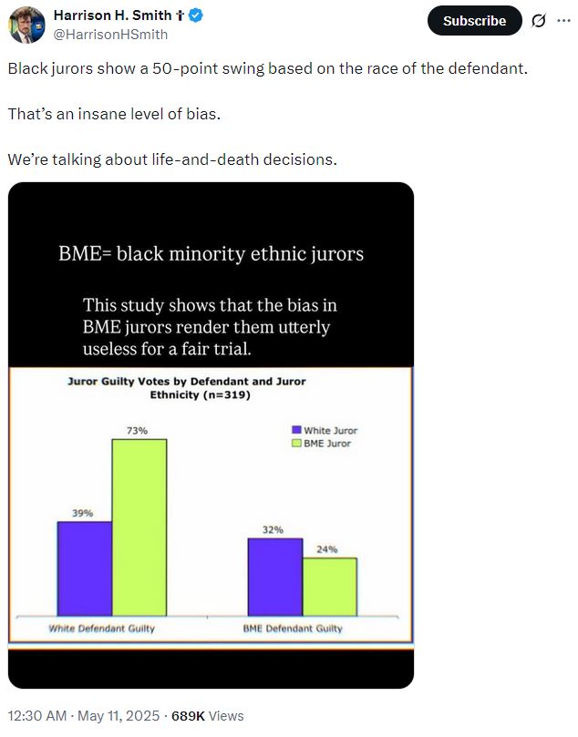 >>532271725there is no such thing as a 'jury of peers' in a multiracial statethere is no such thing as democracy when the state is fractured between a variety of nations