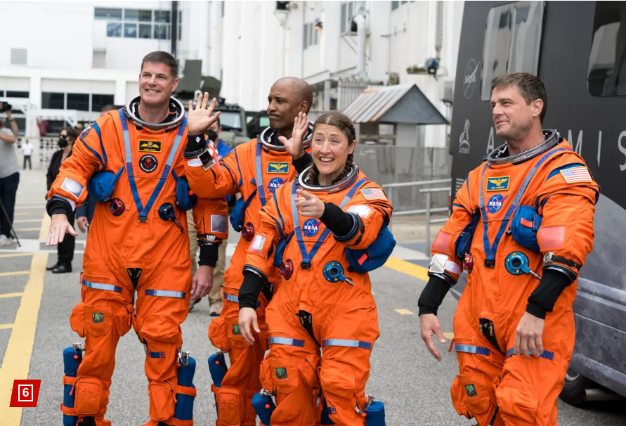 The orange color is designed to be highly visible to search crews flying overhead, especially if astronauts are left flailing in the ocean after a bailout.https://nypost.com/2026/04/02/us-news/why-the-artemis-ii-spacesuits-are-orange/
