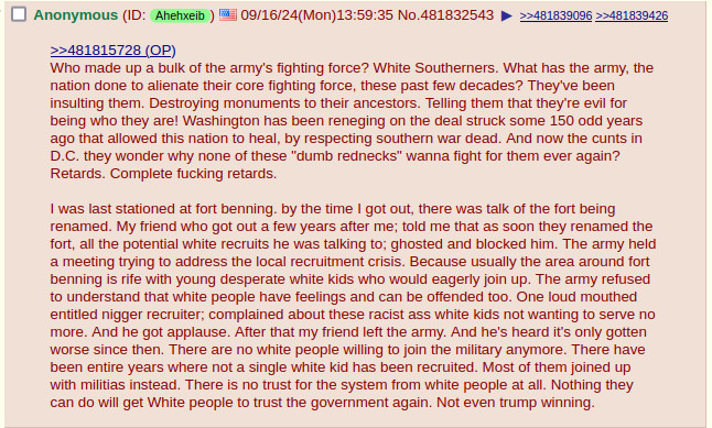 The ZOG is going full bore trying to somehow reconstitute the US military with engaged high IQ huwyte goys. If they only but knew how fucked they were. Do not enlist. If they draft you shoot the officers they send for you. Stand. Survive.