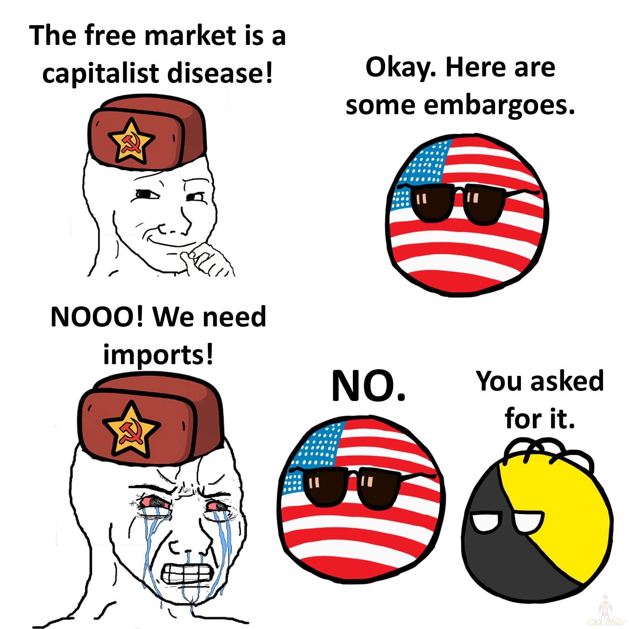 >>532281280Embargoing commie counties doesn't help capitalist countries, it's just pure spite from not being allowed to speculate in their markets to manipulate them and pump and dump