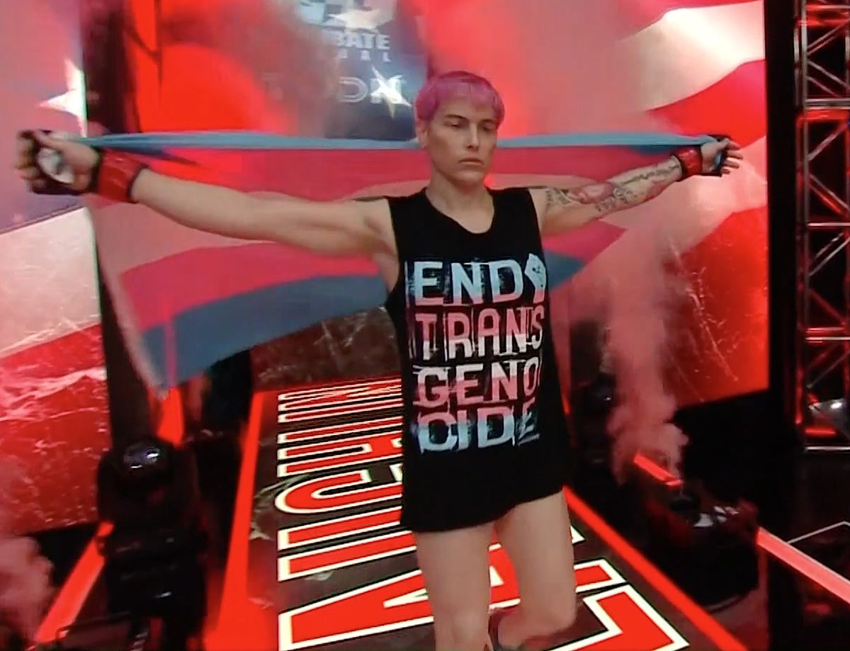>>532287779Well we were exposed to troons like this guy who are psychopathic, beat the living shit out of a woman in a cage, then used it as a platform for his perceived victimhood.Usually when people saw a tranny it was proceeded by events and spectacles like this and it went on for like 8 years.