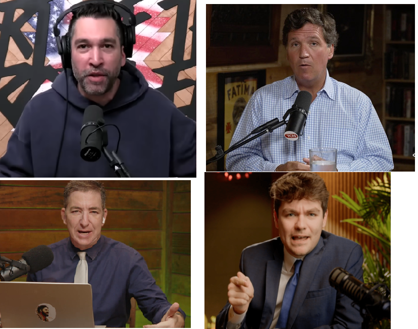 Tucker alone mogs all of fox news and cnn. Two more are libertarians who are right about almost everything but who's viewcounts are suppressed by the military and Fuentes is literally why the zoomers have rejected war mongering, so you better show some respect.