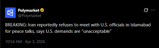 >JUST IN - Iran rejects all U.S. demands, and refuses to meet with American officials in Islamabad — WSJhttps://x.com/disclosetv/status/2040118570936308051