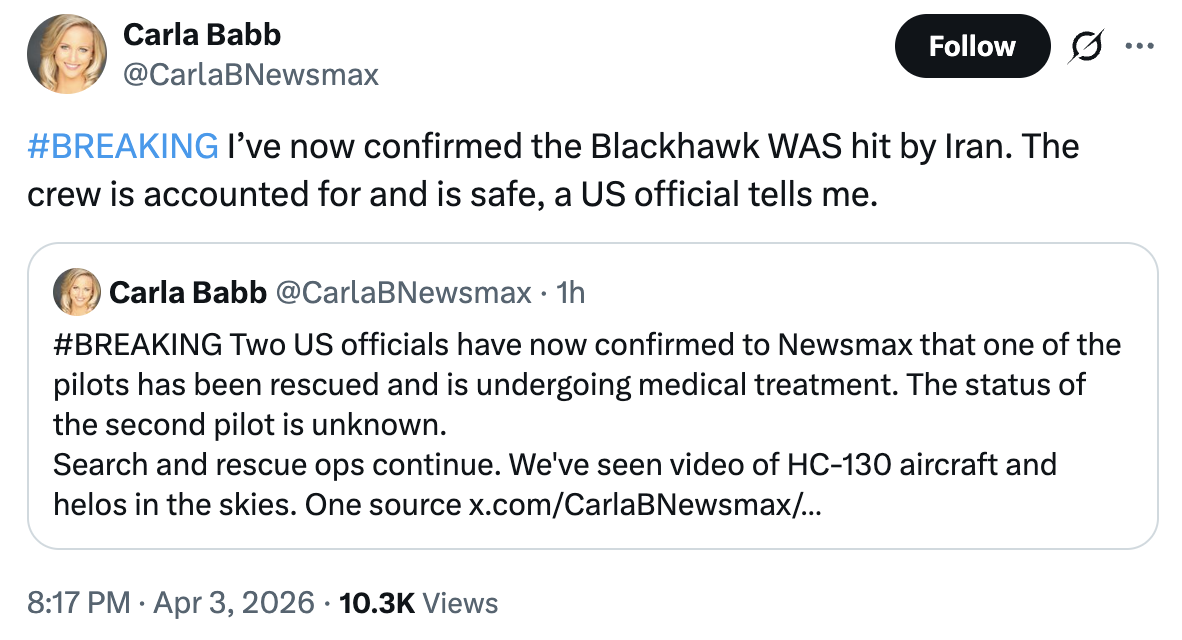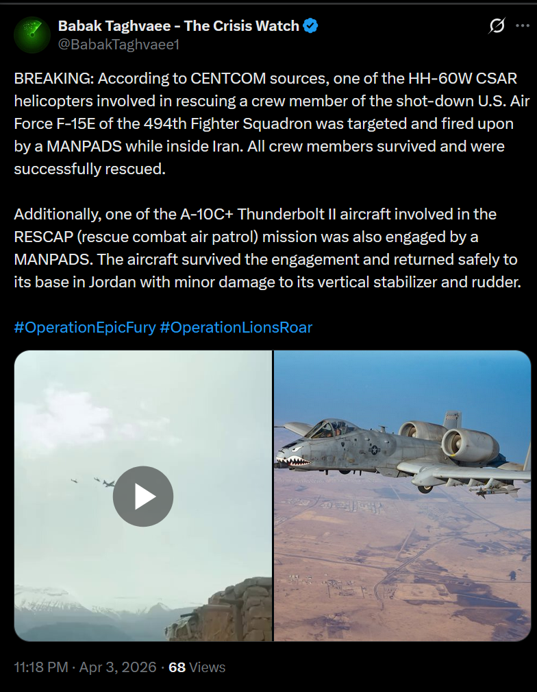 US slowly confirming that Iran did hit one of the Black Hawks