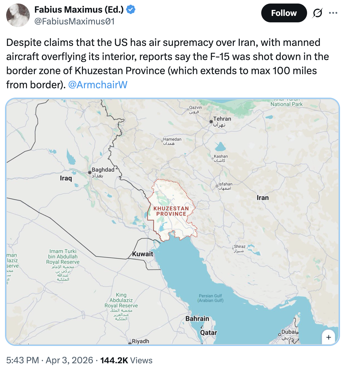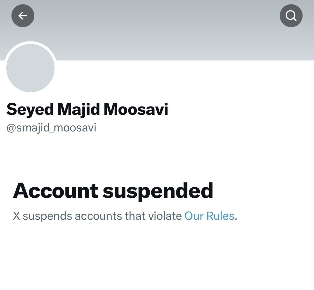 SHUT IT DOWN : > The X account of "Seyed Majid Mousavi," commander of the IRGC Aerospace Force, has been disabled.