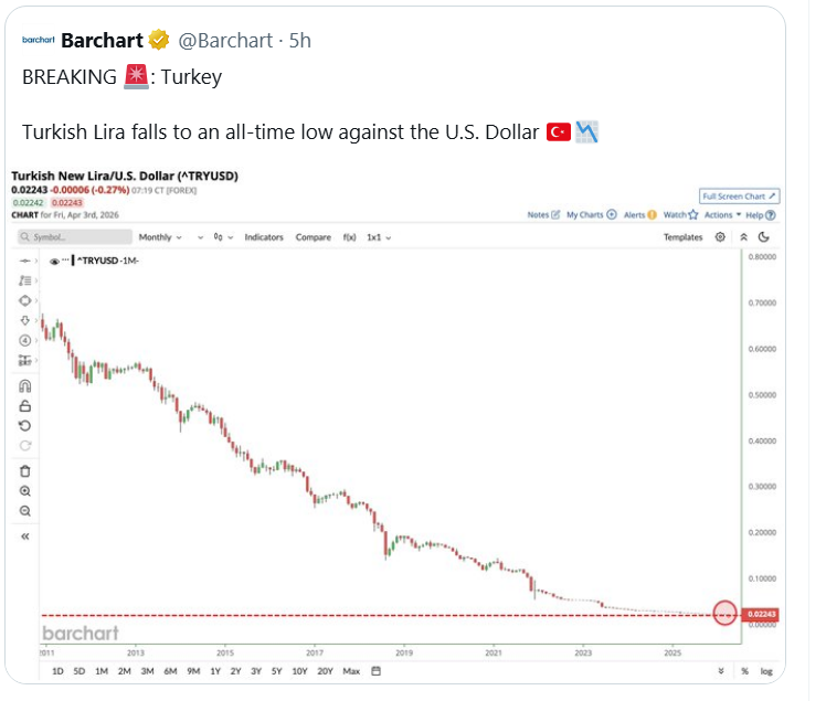Turkish Lira Hits New Historic Low.120 tons of gold were liquidated in recent weeks to support the lira.Their value is estimated at around $20 billion.Maduro's gold is gone.