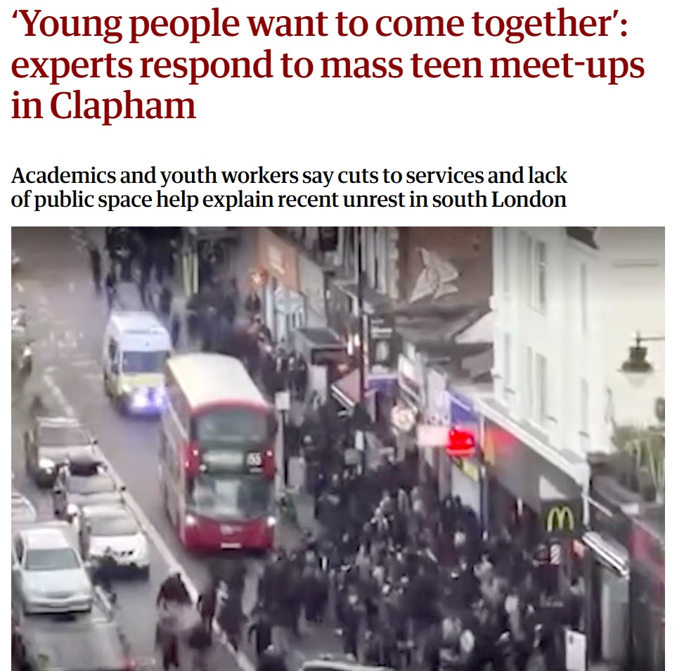 https://www.theguardian.com/uk-news/2026/apr/03/experts-respond-to-mass-teen-meet-ups-clapham-londonMore nigger criminal apology form the Guardian>da yoof just wanna come together we need more ping pong tables an' yoof centres
