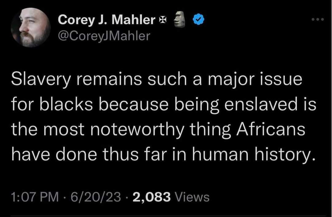 >>532301338Becoming slaves in America was unironically the best thing to ever happen to black people. If it wasn’t, they would have voluntarily gone back to Africa after being freed.