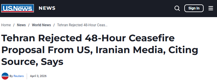 Interesting change in rhetoric.The U.S. is requesting a 48hr ceasefire instead of pretending Iran is the one asking