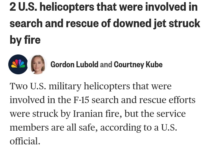 >>532306824>>532306918>> Urgent / From Fox News: The second American pilot has managed to contact the US Army through encrypted radio.So they'll be sending more in, and the Iranians will have chance to put more kit in the areacomfy day again tomorrow